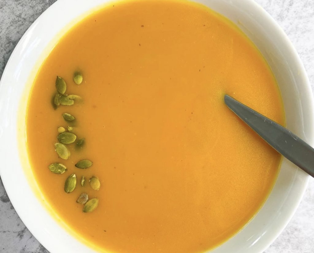 Who doesn’t love pumpkin soup? Make a large pot then freeze in small containers and pull out of your freezer as a quick and healthy meal. The key for flavour on this is to makes sure you have a bright orange pumpkin!