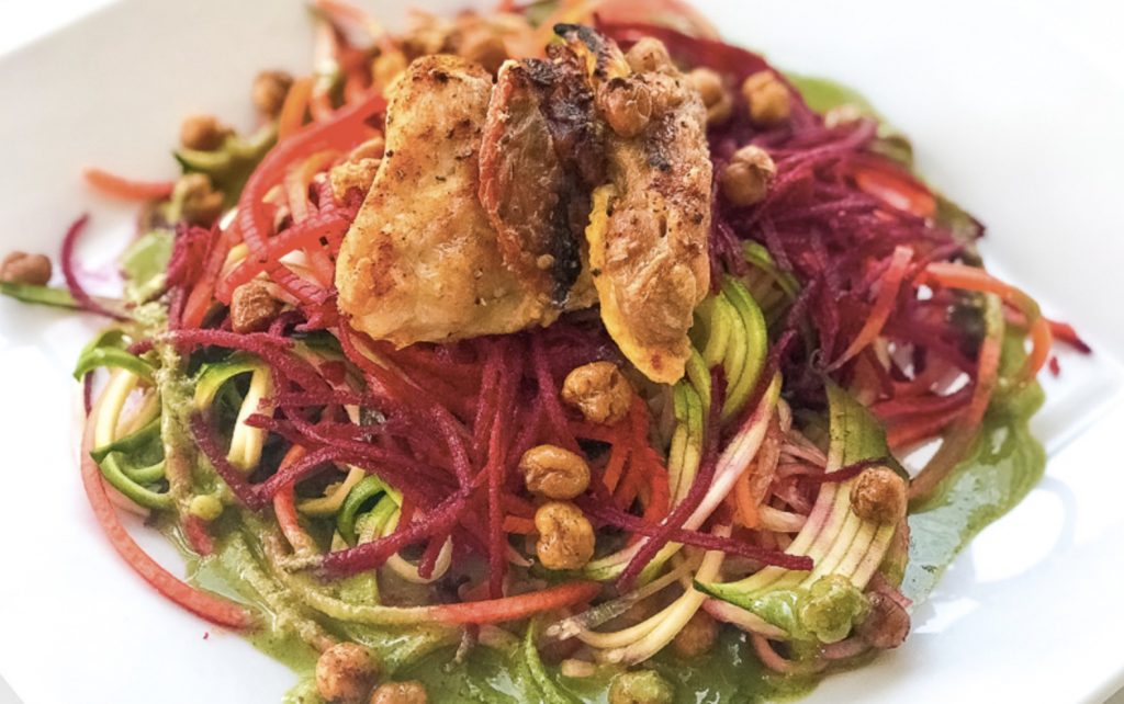 Stuffed Chicken Breast with Zoodle Salad and Roast Chickpeas